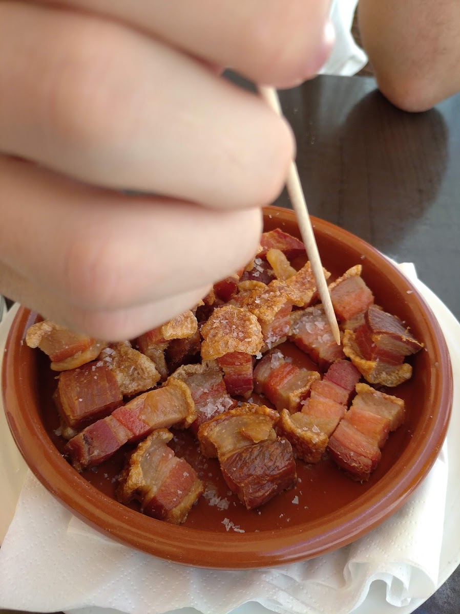 One of the standout trays on the menu is the pulpo a la gallega, a classic dish where perfectly tender octopus is complemented by a drizzle of olive oil and a sprinkle of paprika, evoking flavors straight from the heart of Galicia. Don’t miss out on the pimientos de padrón, where each pepper brings a delightful surprise — some are sweet, while others pack a mild heat, making every bite exciting. And if you happen to drop by during lunch, be sure to indulge in their vermut paired with one of their celebrated tapas, currently available at a promotional price, which has received a warm welcome from both locals and tourists alike.